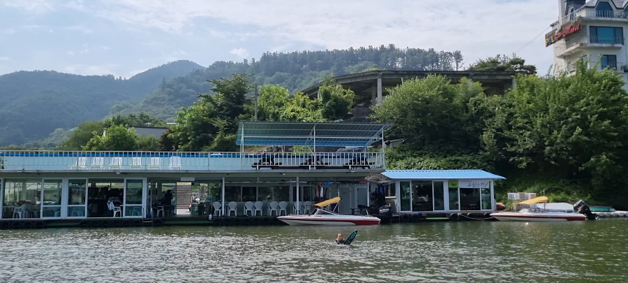 바로 전화를 걸고 사장님과 통화를 하였는데 수화기 건너의 사장님 목소리는 그냥 동네 마실 나오듯 벌떡 일어날 수 있게 아주 편하고 쉽고 자상하셨다. 준비물은 안에 수영복 입고 오셔도 되고 없으면 편한 티셔츠와 반바지 입어도 되고 그도 없으면 오셔서 빌려입으면 되고 종로에서 한시간도 안걸린다는 말씀에 정말 전화 끊고 바로 일어나 출발하였다. 지금 돌이켜보면 그 날의 상황은 모든 것이 완벽했다. 엄청 막혀서 거의 2시간 걸린적도 있고 빠지 (수상스키장)에 사람이 많아 오래 기다려야 하는 날도 있었지만 그날은 나만을 위한 날인 것 마냥 일이 착착 진행되었다. 정말 우리 집에서 서종 IC까지 50분 밖에 걸리지 않았고 도착해서도 아무도 없었으면 뻘쭘했을텐데 몇 몇 분이 계셨었고 사장님도 그리 바쁘지 않으셔서 장비 설명부터 초보 교육까지 직접 해주셨다.